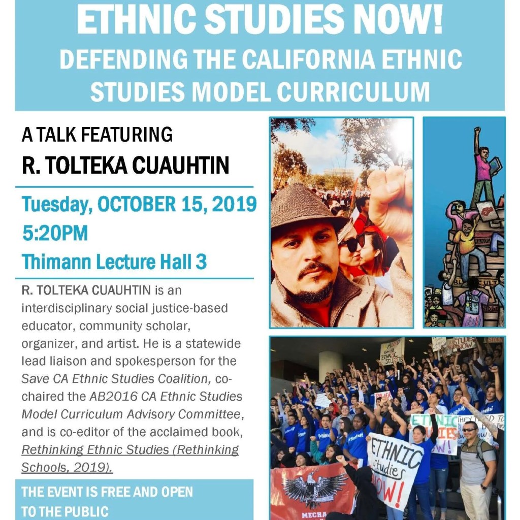 R. Tolteka Cuauhtin is an interdisciplinary social justice-based educator, community scholar, organizer, and artist. He is a statewide lead liaison and spokesperson for the Save CA Ethnic Studies Coalition, co-chaired the AB2016 CA Ethnic Studies Model Curriculum Advisory Committee, and is co-editor of the acclaimed book, Rethinking Ethnic Studies (Rethinking Schools, 2019).