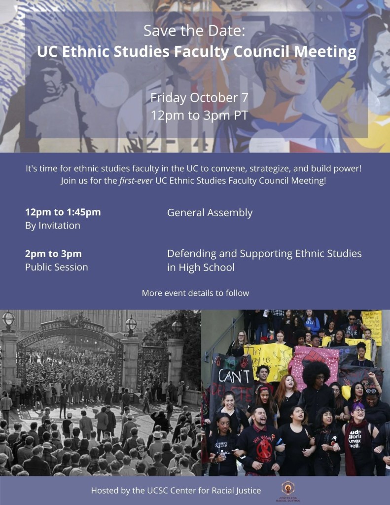 This session is public, and open to all who are interested in the future of Ethnic Studies in California K-12 and higher education.