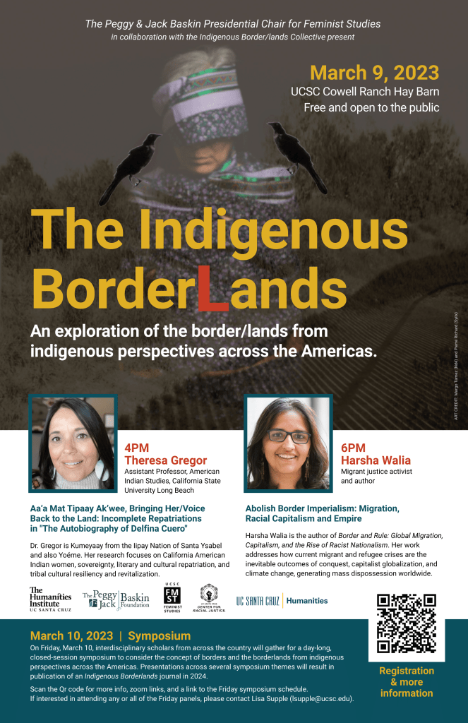 - 4:00pm–Teresa Gregor: Aa’a Mat Tipaay Ak’wee, Bringing Her/Voice Back to the Land: Incomplete Repatriations in “The Autobiography of Delfina Cuero”Dr. Gregor is Kumeyaay from the Iipay Nation of Santa Ysabel and also Yoéme. Her research focuses on California American Indian Women, sovereignty, literary and cultural repatriation, and tribal resiliency and revitalization.
