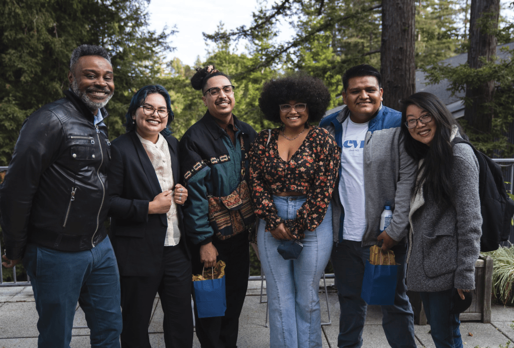 Left to right: Xavier Livermon, PhD, the first director of Black studies and associate professor at UCSC, students Mak Konefal, Chris Cuadrado, Ileana Waddy, Ivan Vega, and Christine Hong, PhD, CRES chair, helped build the CRES program at the University of California, Santa Cruz. (Photo courtesy of Christine Hong)