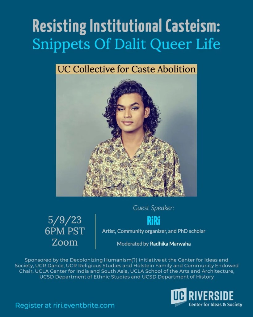 the Decolonizing Humanism(?) Initiative at the Center for Ideas and Society | UCR Religious Studies and Holstein Family and Community Endowed Chair | UCLA Center for India and South Asia | UCLA School of the Arts and Architecture | UCSD Department of Ethnic Studies | UCSD Department of History | UCSC Center for Racial Justice | UCSC Critical Race and Ethnic Studies