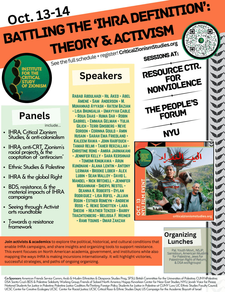 - IHRA, Critical Zionism Studies, & Anti-colonialism