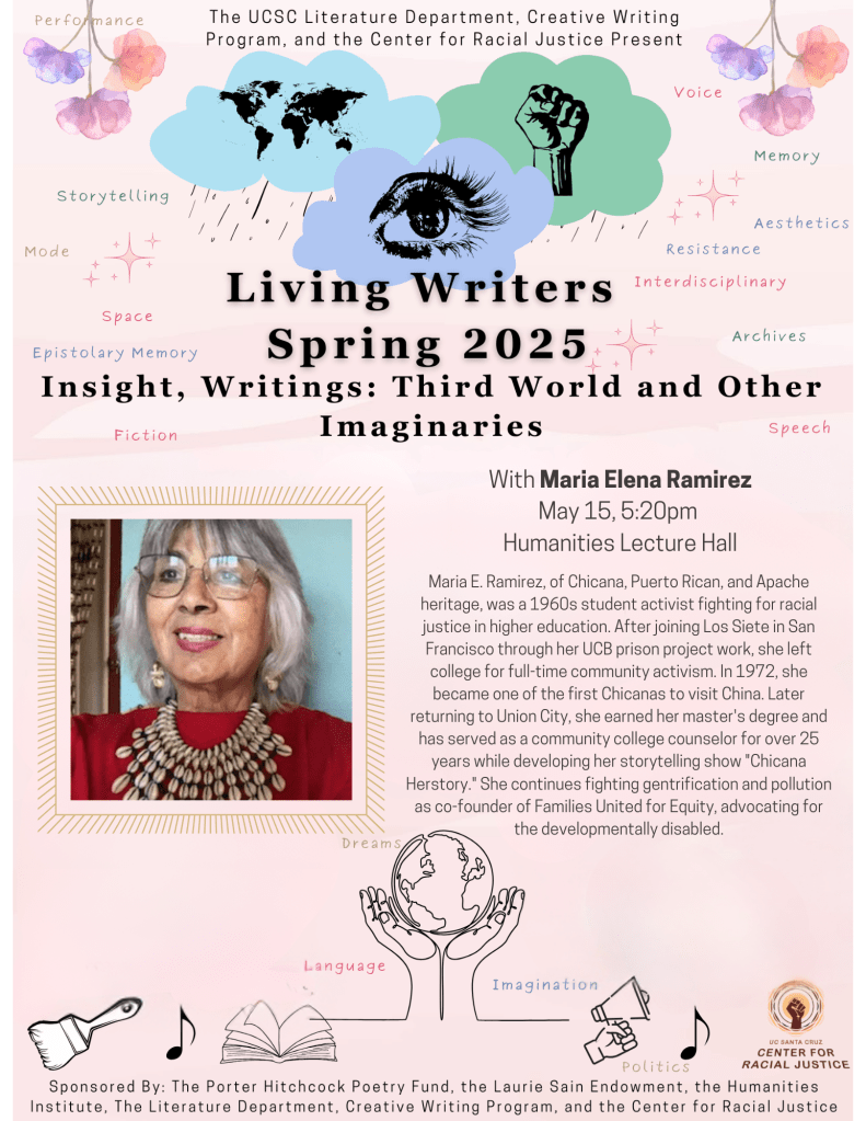 Maria E. Ramirez, of Chicana, Puerto Rican, and Apache heritage, was a 1960s student activist fighting for racial justice in higher education. After joining Los Siete in San Francisco through her UCB prison project work, she left college for full-time community activism. In 1972, she became one of the first Chicanas to visit China. Later returning to Union City, she earned her master’s degree and has served as a community college counselor for over 25 years while developing her storytelling show “Chicana Herstory.” She continues fighting gentrification and pollution as co-founder of Families United for Equity, advocating for the developmentally disabled.