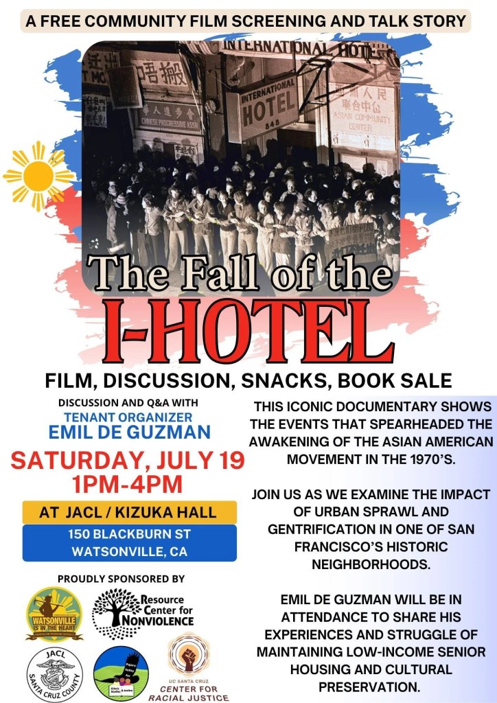 This iconic documentary shows the events that spearheaded the awakening of the Asian American movement in the 1970’s. Join us as we examine the impact of urban sprawl and gentrification in one of San Francisco’s historic neighborhoods. Emil De Guzman will be in attendance to share his experiences and struggle of maintaining low-income senior housing and cultural preservation.